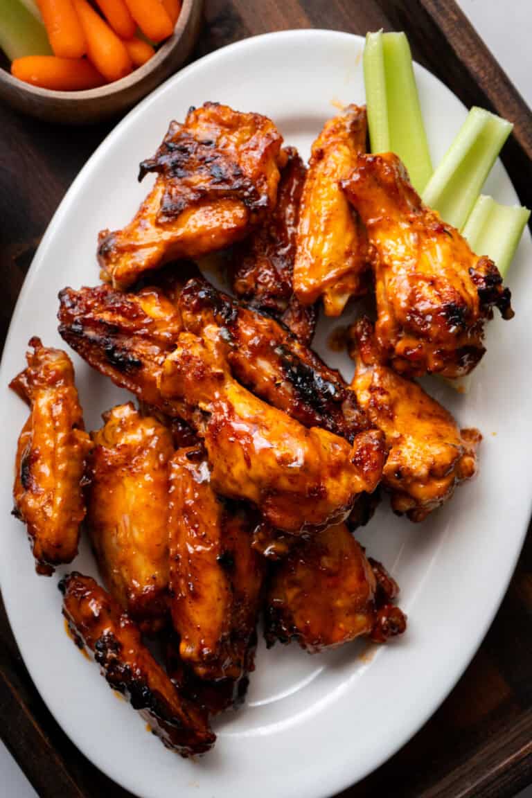- Brush on the buffalo sauce the last 10 minutes and let it tack up.