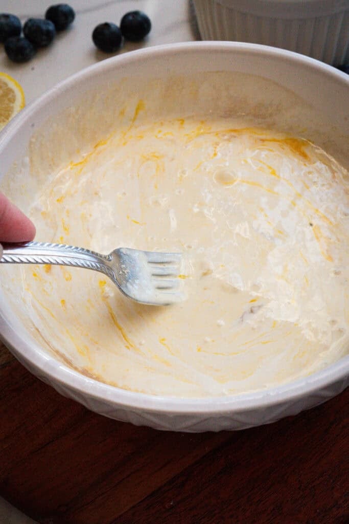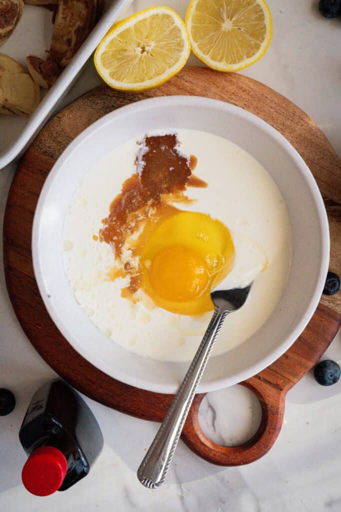 - In a small bowl, mix the heavy cream, lemon juice, eggs and vanilla extract.