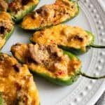 These Cheesesteak Jalapeño Poppers are stuffed with savory shaved beef, melty cheese, and caramelized onions, creating a spicy, cheesy appetizer that tastes like a Philly cheesesteak in jalapeño form.