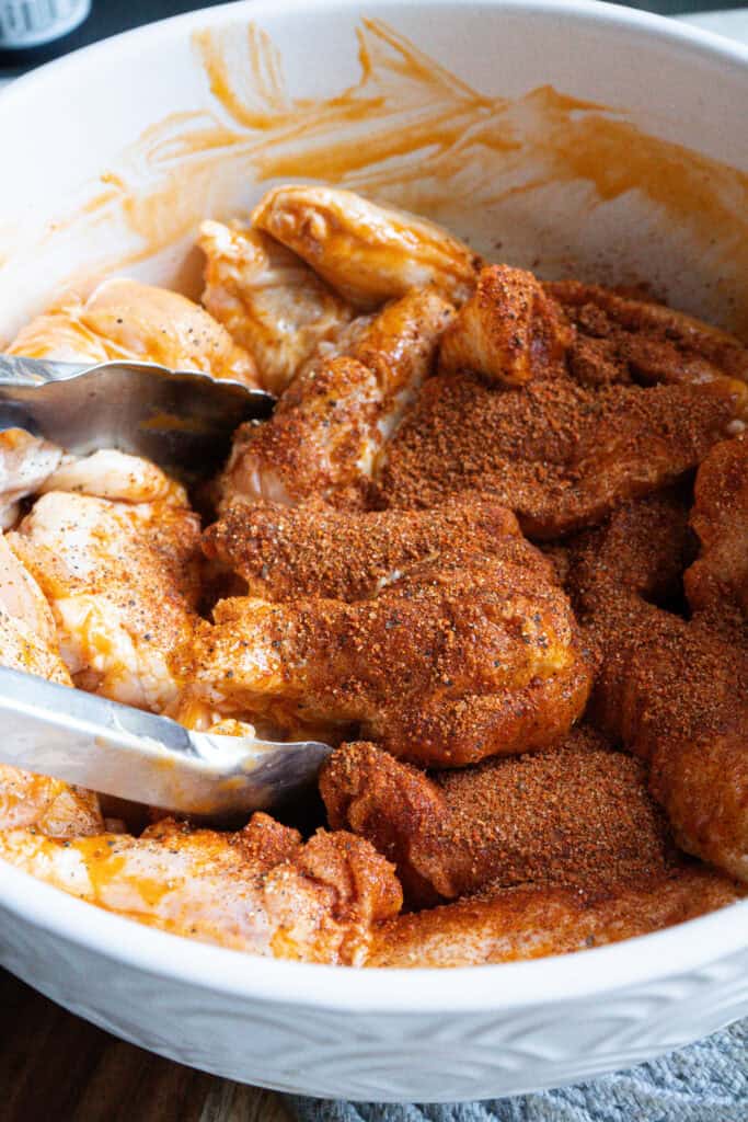 Mix the wings together thoroughly until everything is evenly coated.