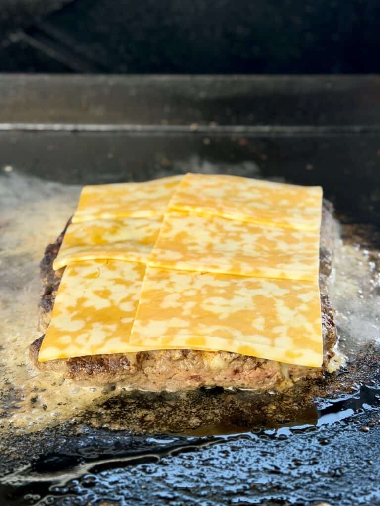 Place the full sheet of sliders onto a preheated griddle over high heat.