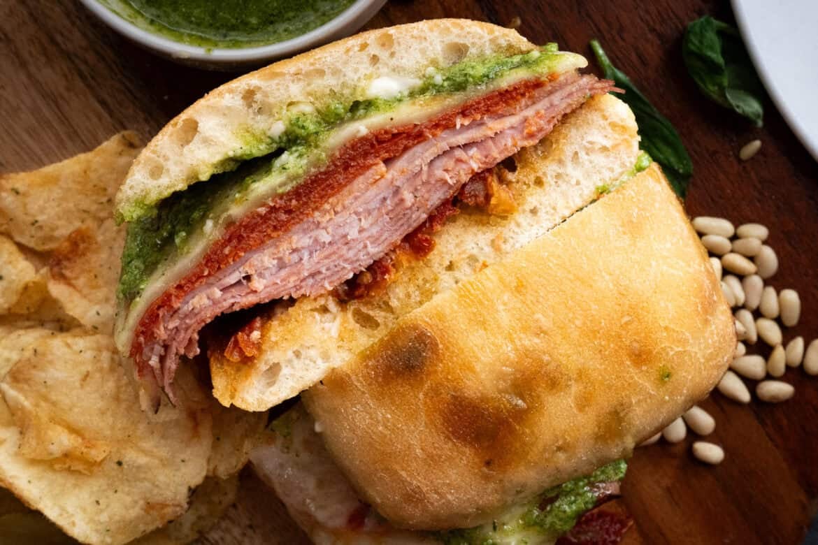With generous amounts of pesto, toasty ciabatta rolls, and layers of Italian meat and provolone cheese, this recipe transforms simple ingredients into something truly special. One bite and you’ll agree — this isn’t just another sandwich; it’s your new favorite thing to make.
