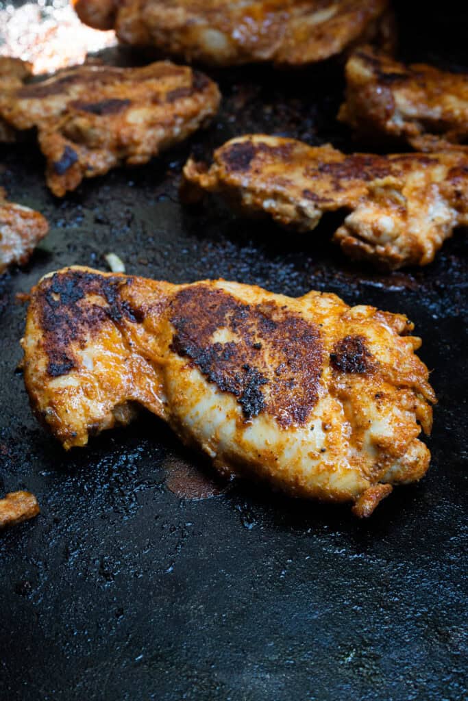 - Cook the chicken on a hot griddle flipping every 2 minutes. Remove once the chicken reaches an internal temperature of 165°F.